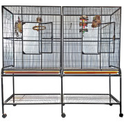 Double Flight Bird Cage with Divider - Black (64"x21"x65")