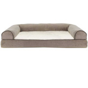 FurHaven Faux Fleece & Chenille Soft Woven Memory Top Sofa Pet Bed - Cream (Jumbo Plus)