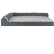 FurHaven Two-Tone Faux Fur & Suede Deluxe Chaise Lounge Pillow Sofa-Style Pet Bed - Stone Gray (Large)