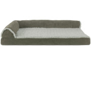 FurHaven Two-Tone Faux Fur & Suede Deluxe Chaise Lounge Pillow Sofa-Style Pet Bed - Dark Sage (Large)