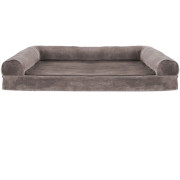 FurHaven Faux Fur & Velvet Cooling Gel Top Sofa Pet Bed - Driftwood Brown (Large)