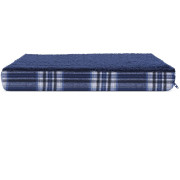 Furhaven Faux Sheepskin & Plaid Deluxe Orthopedic Pet Bed - Midnight Blue (Small)