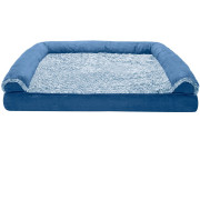 FurHaven Two-Tone Faux Fur & Suede Orthopedic Sofa Pet Bed - Marine Blue (Jumbo)