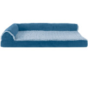 FurHaven Two-Tone Faux Fur & Suede Deluxe Chaise Lounge Memory Top Sofa Pet Bed - Marine Blue (Large)