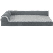 FurHaven Two-Tone Faux Fur & Suede Deluxe Chaise Lounge Cooling Gel Top Sofa Pet Bed - Stone Gray (Medium)