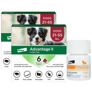 Advantage II Large Dogs 21-55 lbs.|Vet-Recommended Flea Treatment & Prevention|12-Month Supply + Tapeworm Dewormer for Dogs (5 Tablets)