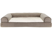 FurHaven Faux Fleece & Chenille Soft Woven Cooling Gel Top Sofa Pet Bed - Cream (Jumbo Plus)