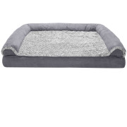 FurHaven Two-Tone Faux Fur & Suede Orthopedic Sofa Pet Bed - Stone Gray (Medium)